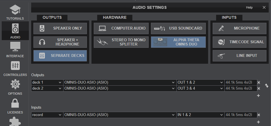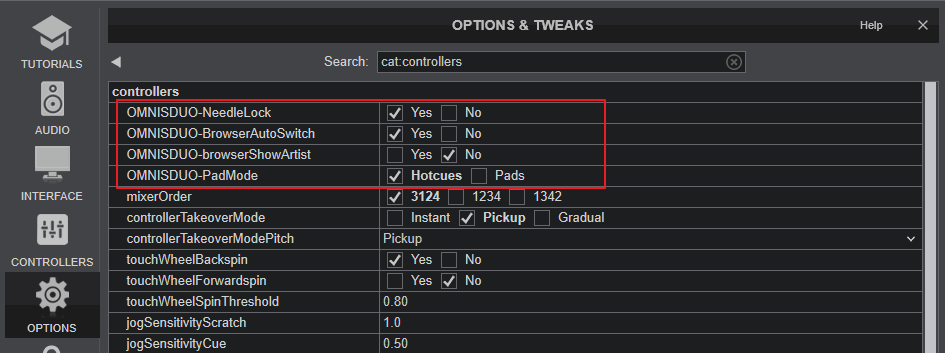 There are a few settings available when the Omnis Duo is connected, to unlock Needle Search on the display, turn off auto-switch to Deck view after loading a Track etc.