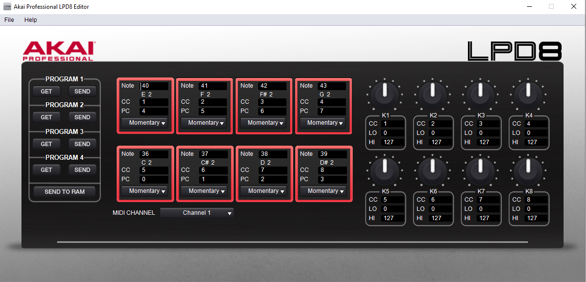 - Open AKAI Professional LPD8 Editor