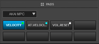 The 16 PADS offer Velocity and After-Touch Velocity and is pre-defined and used in Sampler mode to control the Volume of the triggered Sample.