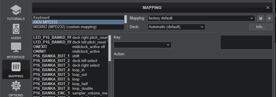 The MPD232 will be detected as 4 separate units in VirtualDJ Settings->Controllers tab as shown in the image above.