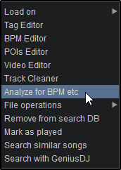 1. Type an asterisk (*) in the Search field. This will display all the tracks of the Search Database in the File list. Select all files (using CTRL+A), and right-click on any of the selected files and choose Batch Analyze for BPM etc.