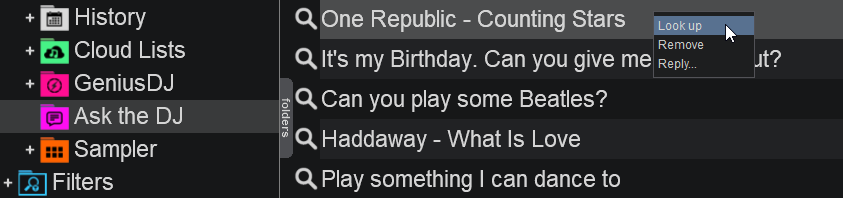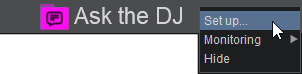 By default your VirtualDJ ID is used for incoming requests, but this can be changed by right clicking on the Ask the DJ folder and selecting Set up…