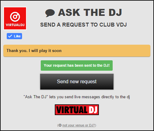 Ask the DJ is an online feature that allows your audience to send requests and comments via any device that can open a web browser. Providing that your computer has an active internet connection, the results will appear in the
