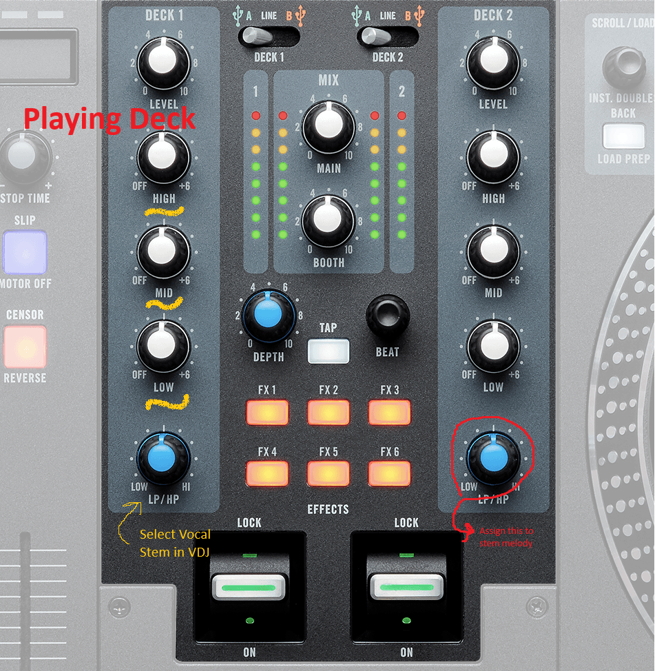 -Deck 2 (None playing) , filter knob assigned to stem melody.