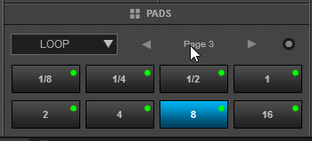 Each one of the 8 Pads triggers a Loop of a different size in beats, depending on the selected Page, starting from 1/32 of a beat up to 128 beats.