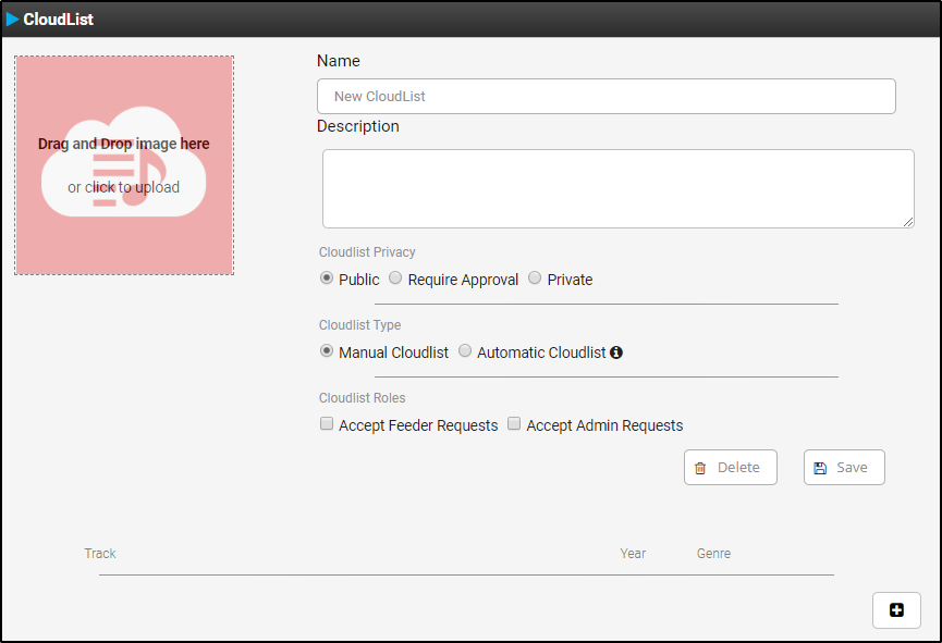 Note that there are two types of cloudlists. The first one, the manual cloudlists, are like regular playlists, where you (and potentially other people you allowed to) manually drag and drop tracks to build and maintain it.
