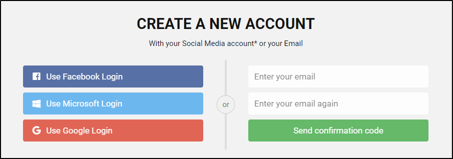Enter your email twice to verify to confirm your email address and then click on the Send Confirmation Code button in order for your email to be verified (an automated email will be sent with a verification code)