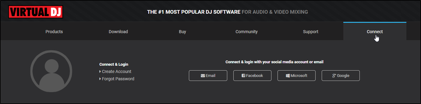 Alternatively you may select the "Create an Account" option/link you will find in the Connect section of the main VirtualDJ page http://www.virtualdj.com ,