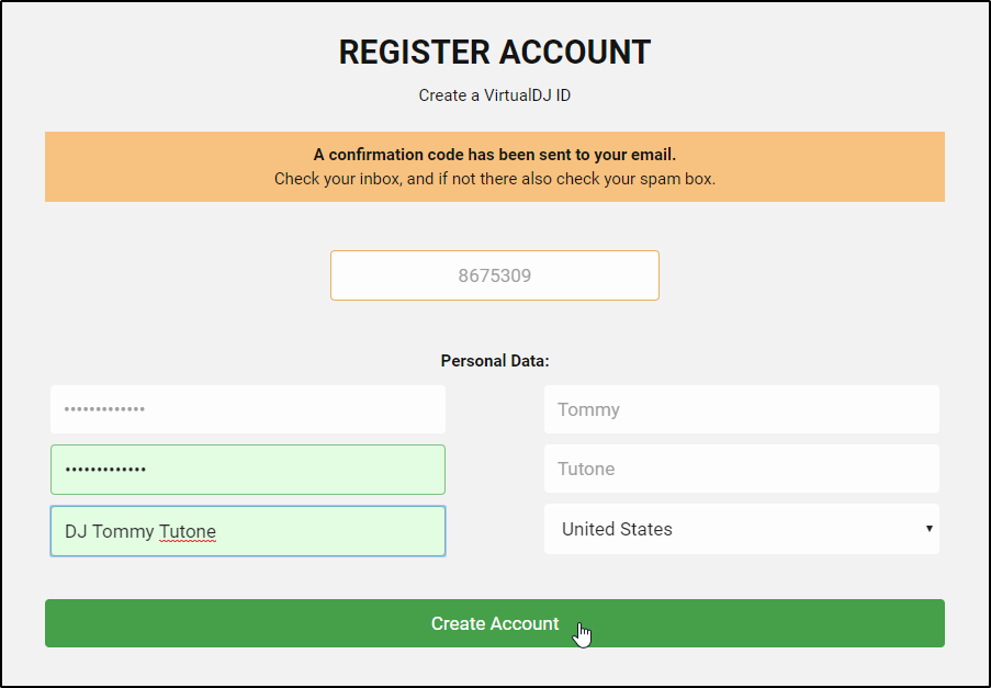 Your account should be created successfully and you should see Hello [Your First Name] at the top left of each virtualdj.com page.