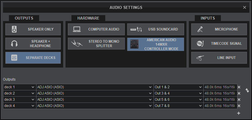 VirtualDJ will route each deck to a separate stereo channel of the multi-channel USB soundcard. Click APPLY to save these changes. Controller