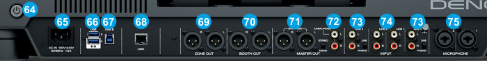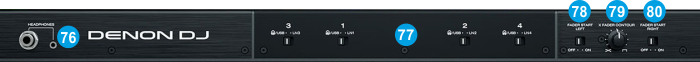 HEADPHONES SOCKET. Connect your 1/4" or 1/8" headphones to this output for cueing and mix monitoring.