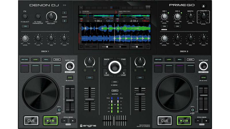 Prepare, Perform, Back-Up & Backpack! Rechargeable Battery-powered, Standalone DJ System with WiFi Streaming. With up to 4-hours of built-in, lithium-ion battery power, PRIME GO is the ultimate, backpackable, most portable standalone DJ console ever. Prepare DJ sets on a plane, train or car, use as a fully featured pro-grade back-up for larger events, or play outdoor, mobile, after-party or club gigs.