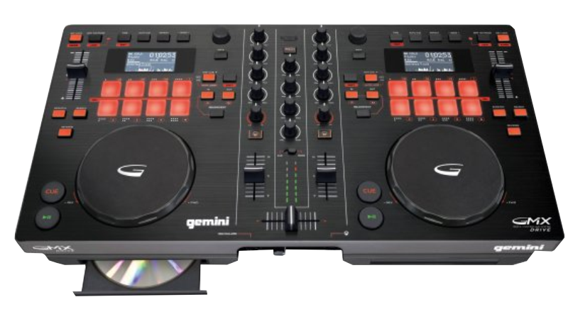 The GMX DRIVE is a multi-format media controller for the DJ who desires the ability to playback all forms of digital music. DJ’s can playback tracks from a single USB drive, from either of the two slot-in CD drives, or from a laptop as a versatile MIDI software controller for Virtual DJ. The eight large performance pads per deck and the newly designed touch-sensitive mechanical jog wheel ensure inspired and intuitive control, while the sleek brushed top, high-contrast screens, and backlit function buttons give the GMX DRIVE a no-nonsense professional look.