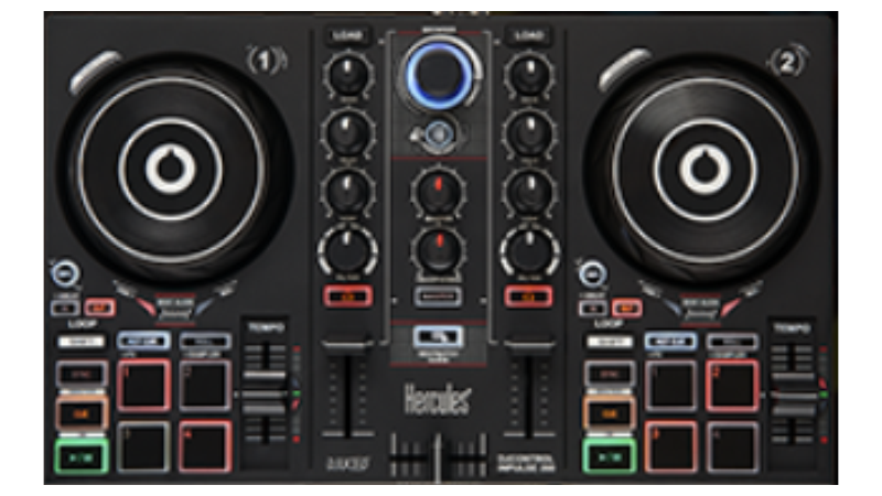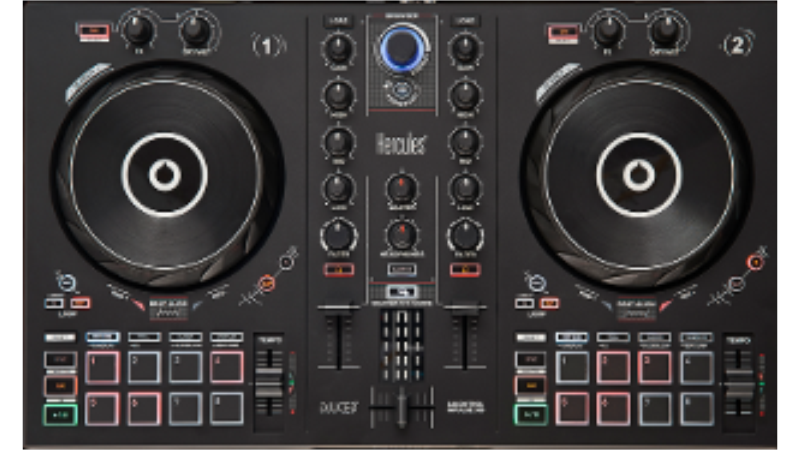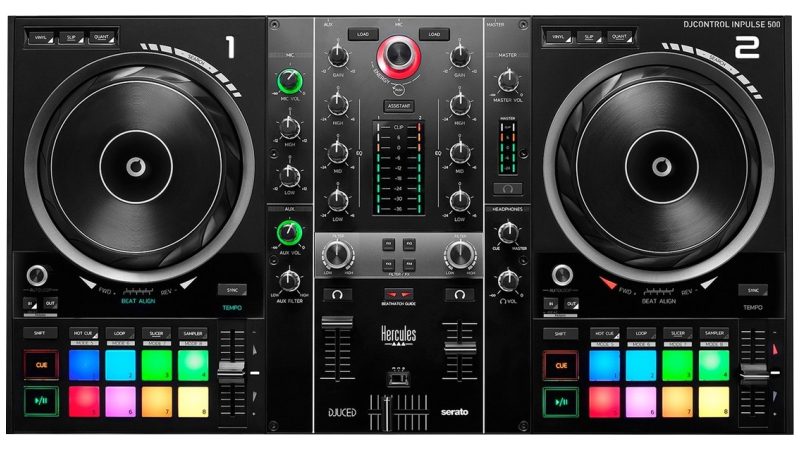 Hercules DJControl Inpulse 500 is created to help you get started DJing, refine your skills and perform in front of audiences. Has a professional design with a sturdy metal backing plate, and tons of great features: four extendable/retractable non-slip feet to elevate your mixing, a hardware mixer for the audio inputs, a dedicated Filter/FX area with awesome effects, two large jog wheels with touch detection for scratching, 16 backlit rubber RGB pads, helpful light guides for mixing with total confidence... and so much more.