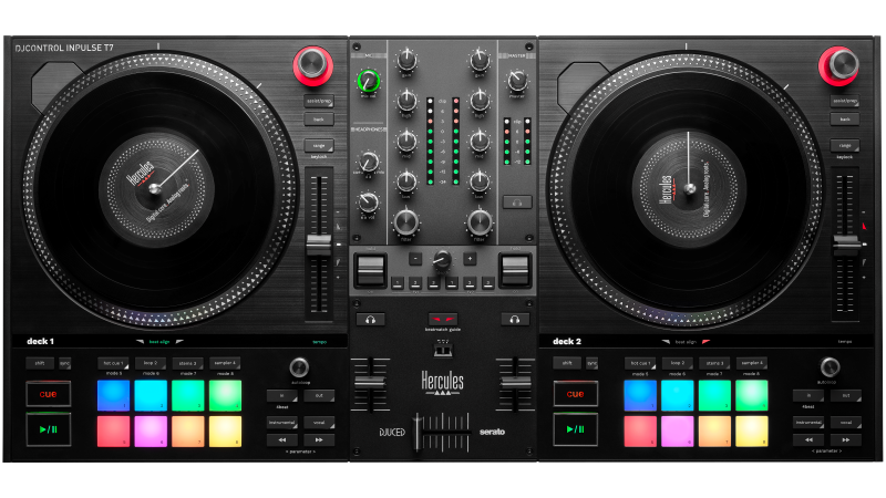 Are you an aspiring DJ who wants to start spinning on vinyl? The Hercules DJControl Inpulse T7 is the perfect motorized DJ controller to help you take your first steps towards mastering the art of vinyl turntables! This modern take on a classic tool combines the genuine feeling of real vinyl discs with the benefits of digital technology. With 2 motorized platters for 7” discs that go from 0 to 33⅓ RPM in just a tenth of a second, you can practice DJing on vinyl and experience the authentic feeling of real turntables. The separate vinyl record, slipmat, and platter even allow you to remove the vinyl record, giving you full control of your performance.