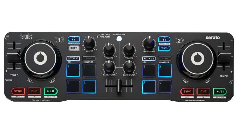 Ultra-compact, ultra-light, ultra-practical and ultra-unique with its lights, the DJControl Starlight packs all the features needed to mix and scratch with VirtualDJ. With its built-in audio interface, the DJControl Starlight offers pre-listening in the headphones so you can then play your mix on speakers, which is perfect for learning or creating new mixes. The added bonus: the bright and powerful RGB backlighting with unique strobe effects to make it easier to learn how to mix.