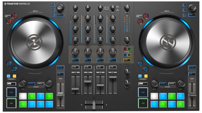 At the heart of the TRAKTOR KONTROL S3 is the four-channel mixer, with full-length faders, EQ, cueing, and Mixer effects on each channel to shape your sound. Juggle Hotcues, samples, and loops with eight RGB pads on each deck, then switch decks and keep on-track with the jog wheel light rings. The touch-sensitive and super smooth jog wheels are not just for nudging and stalling, but feel great for scratch workouts too.