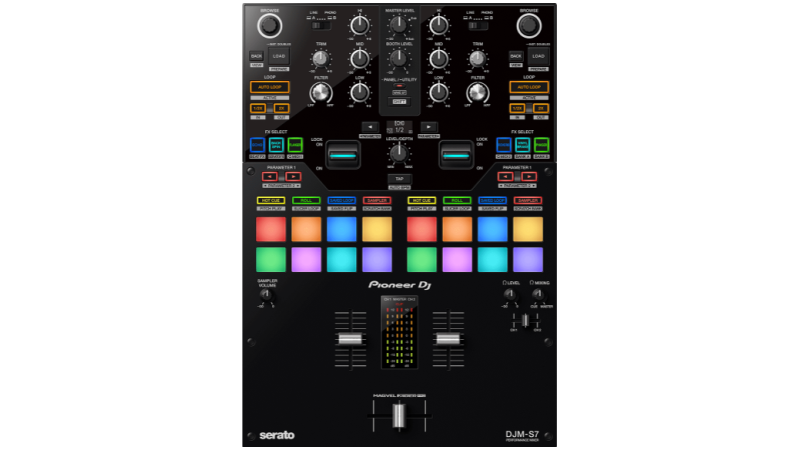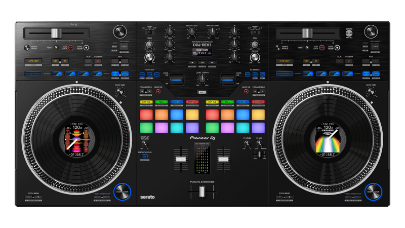 The DDJ-REV7 is built to help you get the most from the performance software and boasts a brand-new design that includes large, motorized jog wheels with On Jog Display to create a tactile connection between you and your music. The layout of this 2-channel unit emulates a professional DJM-S mixer + PLX turntable setup, and includes specialized features for open-format and scratch DJs.