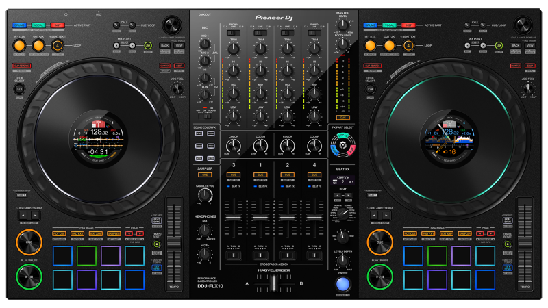 The DDJ-FLX10 is a 4-channel performance DJ controller which includes a host of brand-new features including Track Separation technology, which enables new creative possibilities such as the easy performance of mash-ups on the fly with no need to prepare tracks in advance.
