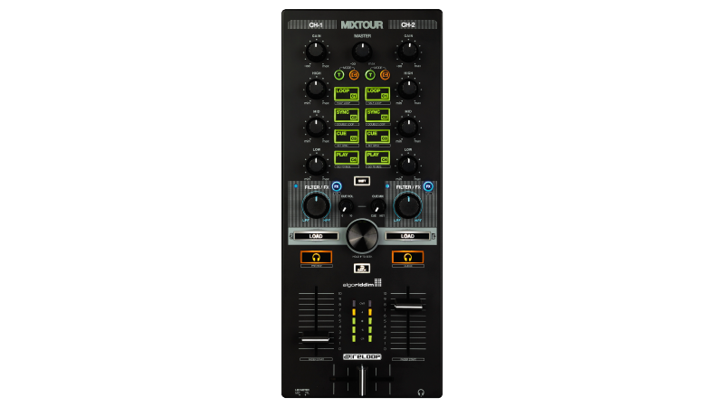 MIXTOUR has been designed from the ground-up to offer a compact, two-channel DJ controller layout which allows you to get the party started anywhere, anytime. A fully integrated device that fuses vital mixing functions with a Transport, Remix and FX section into a sleek device.