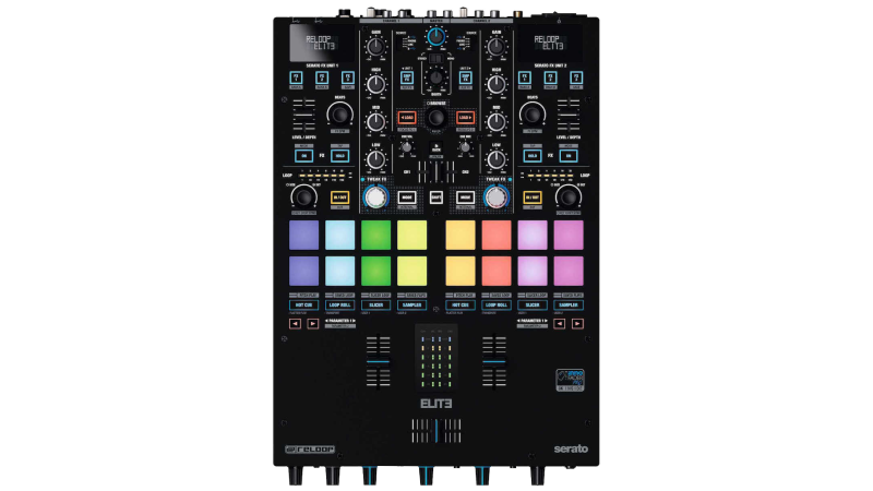 Reloop ELITE is a professional DVS mixer, developed in close cooperation with international turntable artists. Due to the combination of a performance-oriented layout and powerful features, ELITE allows you to fully realize your DJ potential. 16 large, velocity sensitive RGB performance pads: Control up to 12 performance modes per deck DUAL 24-bit interface & 3x non-contact Innofader Pro with high-resolution technology