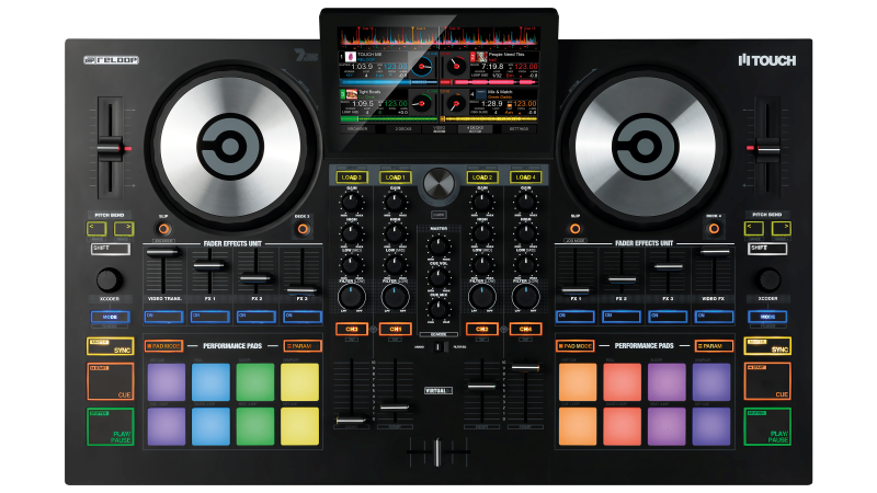 Standalone DJ Set - 7” Touch Screen, 6” Touch Sensitive Jog Wheels with Smart Scratch for Hands on Control, powered by Engine DJ. Crossfader, mixer with 3-band EQ and 2 decks with volume controls, sync, cue/stop, play/pause, 4 dual-layer performance pads with 4 pro DJ modes and FX section with 4 effects and 2 toggle switches