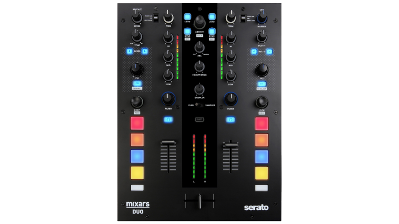 The Mixars PRIMO Controller and Mixer is a plug-and-play 2-channel controller and mixer. Each deck includes eight RGB backlit performance pads to triggering cue points, rolls, slices, and samples. What's more, the PRIMO has a KeySync button to instantly match musical keys of tracks.