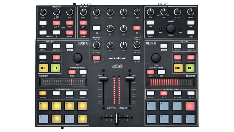 Novation TWITCH is a DJ controller with a completely new take on DJing and performing. It has Touchstrips to navigate tracks and you can slice-up your beats and mix them back together – totally on the fly. TWITCH has a built in audio interface which is absolutely rock-solid with headphone, booth and main outputs. If you are already a DJ, or produce your own music and are looking for new ways to perform; 16 triggerpads, touchstrips, mixer and numerous rotary controls put your music at your fingertips.