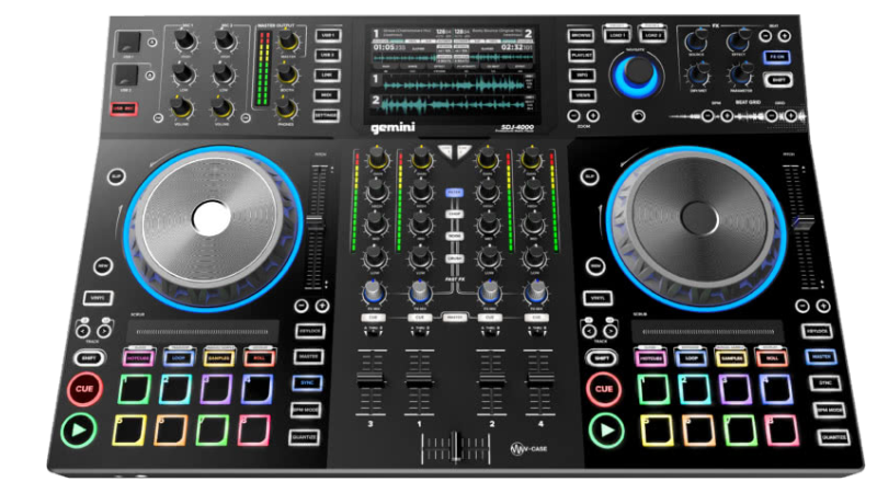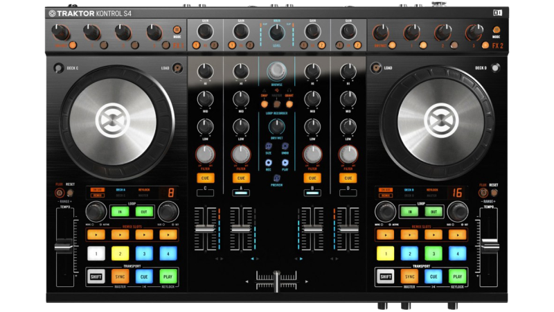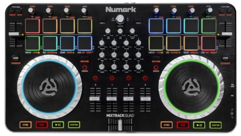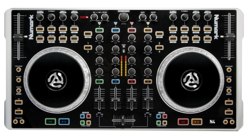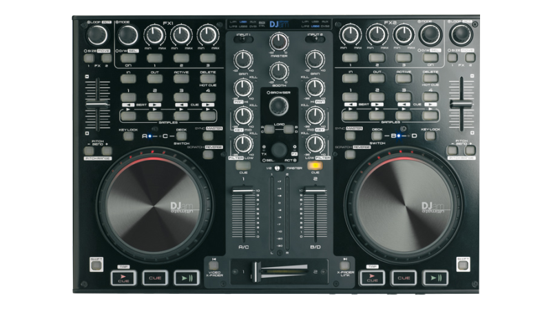 A complete 4 deck controller with built in sound card. Plug in microphones, headphones or even timecode into the vast number of inputs and outputs.