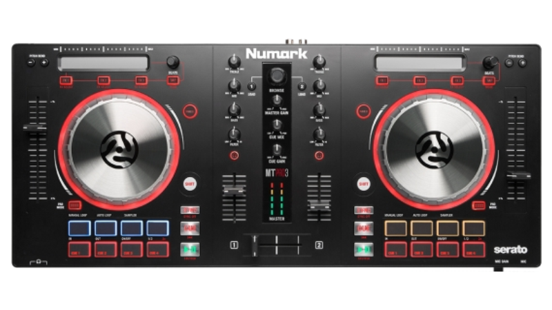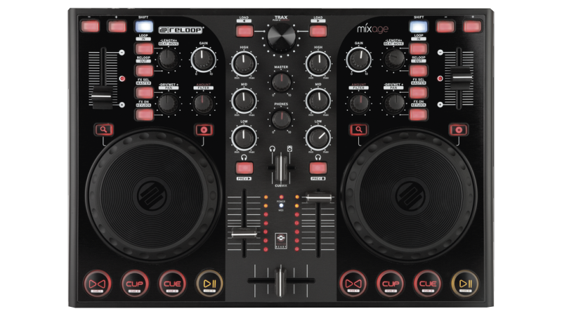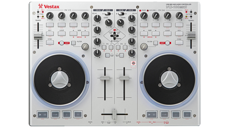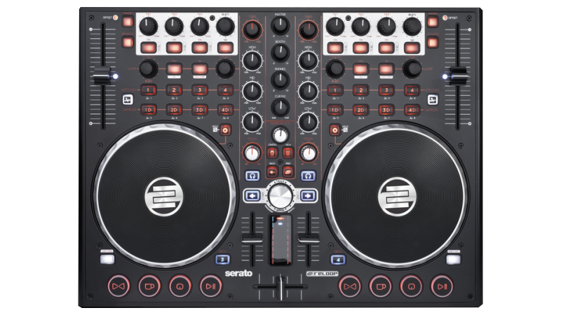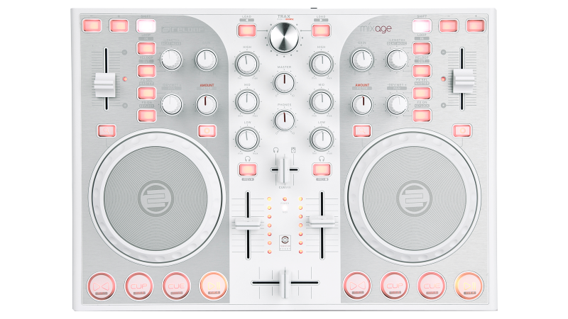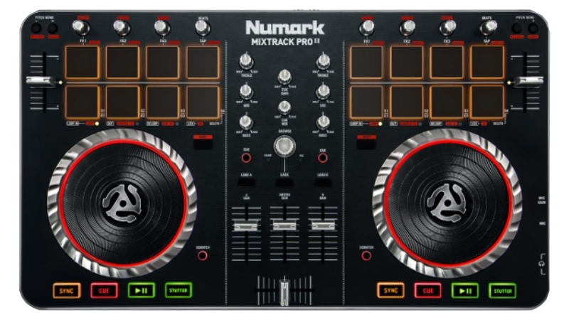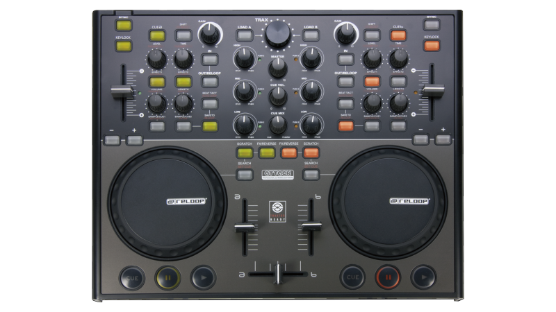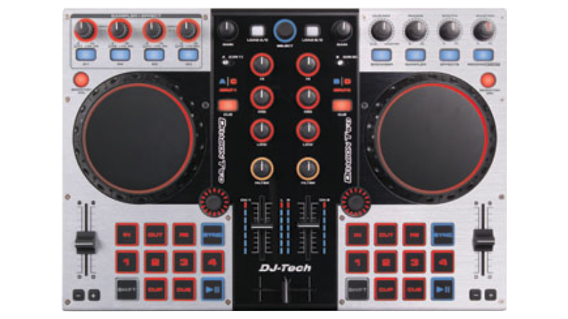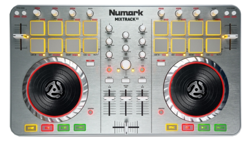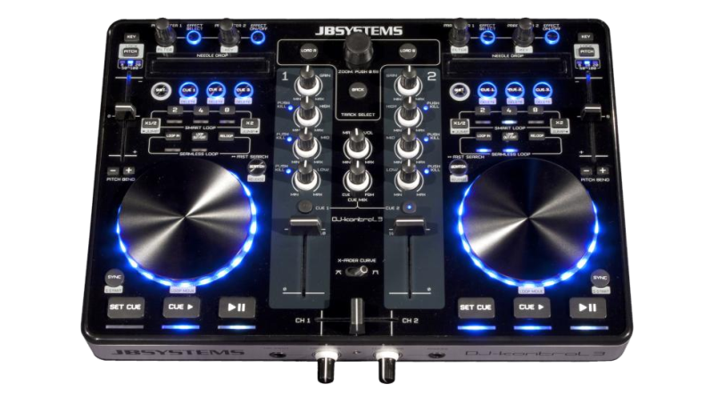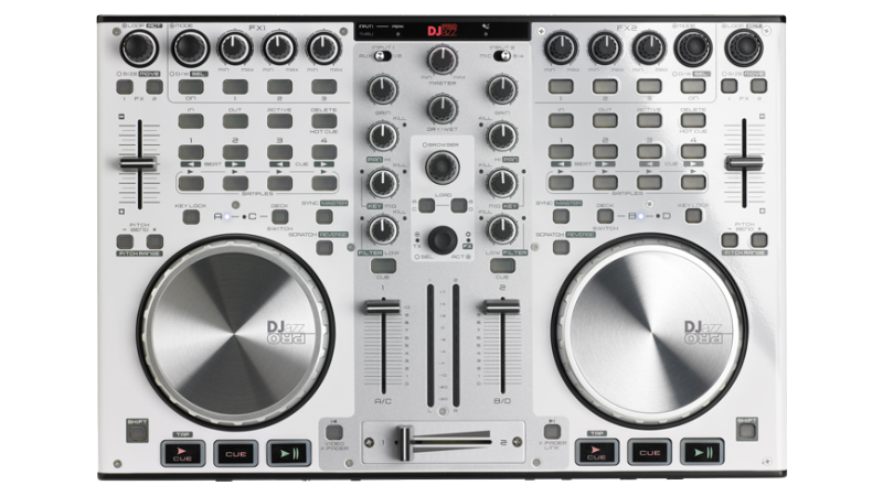 A complete 2 channel controller with built in sound card and touch sensitive jog wheels. Ready to party out of the box!