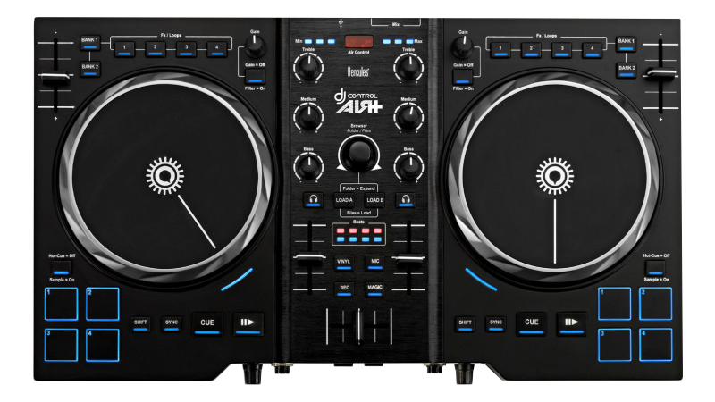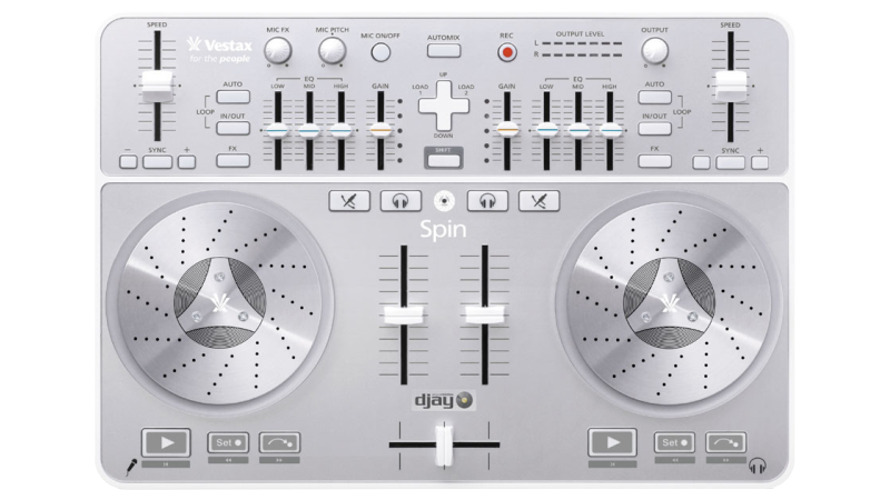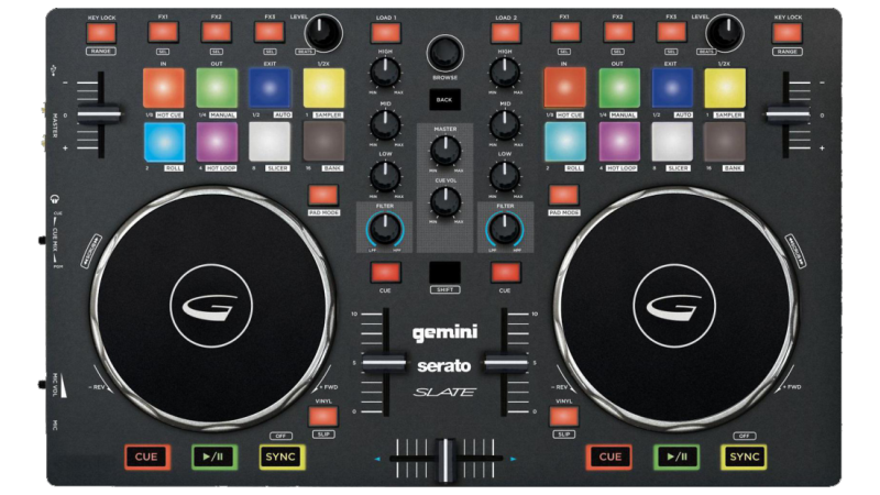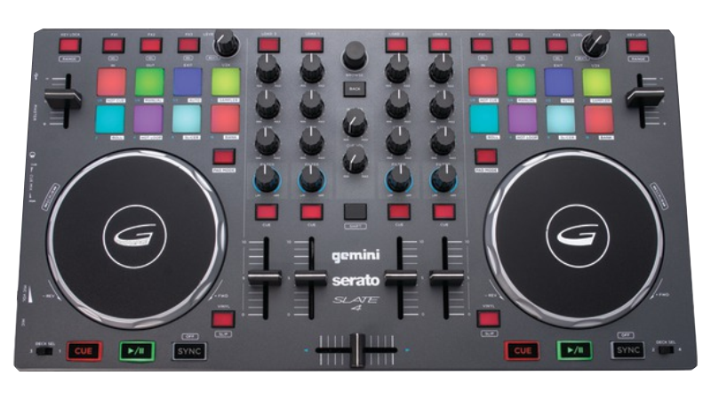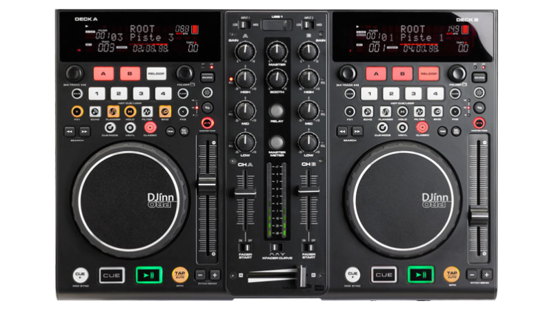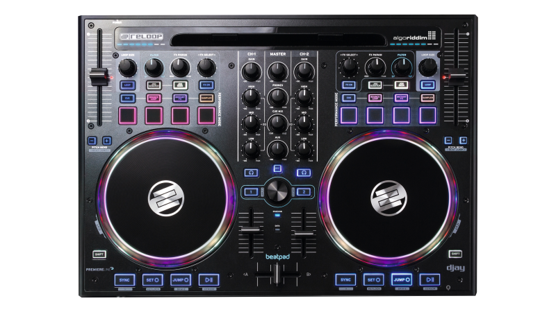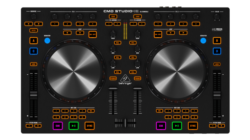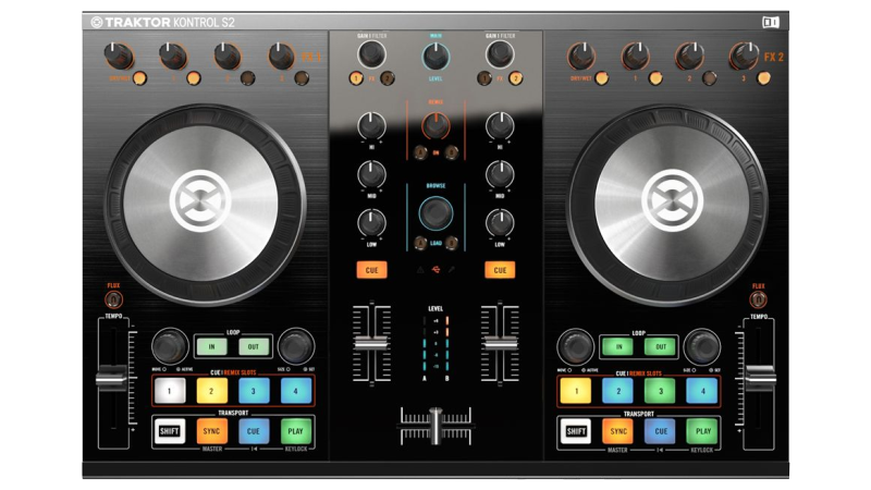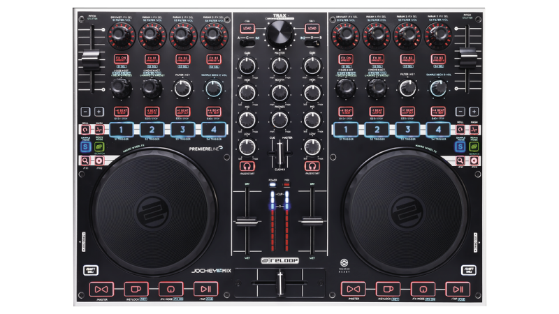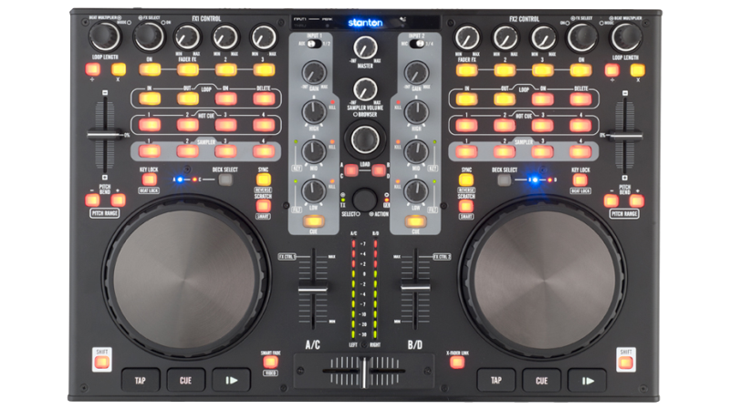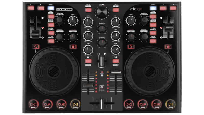A complete 2 channel controller with built in sound card and touch sensitive jog wheels. Ready to party out of the box!