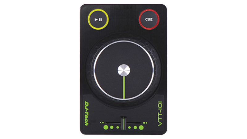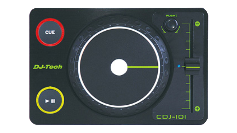 The PDJ is a rack mountable, 2 channel mixer, with touch sensitive jogwheels, and a 3 band channel kill EQ. The integrated sound card allows for 2 line-ins and a headphone output.