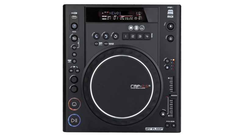 The Reloop RMP-2.5 Alpha is a true cross media player with additional MIDI function. Besides playing current audio formats such as WAV and MP3 from CD, CD-R, memory stick or hard disk drive, it is also possible to control any MIDI compatible DJ software thanks to the RMP-2.5's full MIDI compatibility.