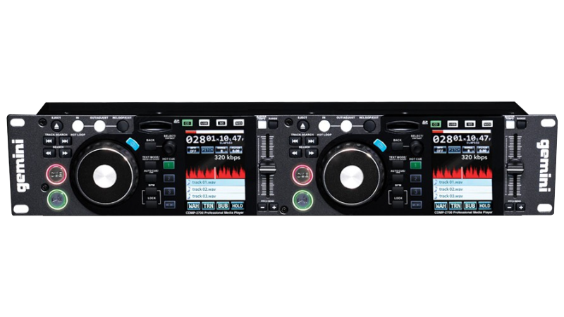 The CDMP Series of professional DJ mixing equipment from Gemini are the perfect addition to your repitoire from the studio to the stage. Equipped with professional features and decks to make any DJ jealous, this unit is a complete all-in-one solution to move a crowd. Its carefully selected collection of professional features fully compliment its intuitive, modern design. The CDMP-7000 is made for multimedia compatibility with the inclusion of a fast loading slot-in CD-ROM that is compatible with audio CDs, CD-Rs, and MP3-CDs, along with a USB input for flash drives, and an SD card slot (SDHC compatible up to 32GB). The CDMP-7000 is designed to give you complete control over your music with the 3 selectable jog modes (Search / Pitch Bend / Scratch), Slip Mode, Reverse, 6 DSP-powered effects with Wet/Dry control and 3 programmable hot cues help you perfect your set without struggling through the interface, all with the color LCD touchscreen with contrast adjustment and comprehensive waveform display and 5″ touch-sensitive jog wheel with VFD display