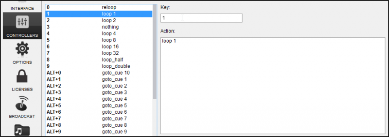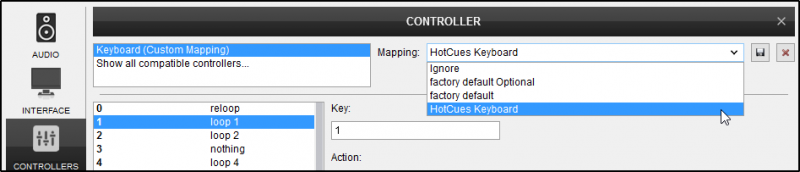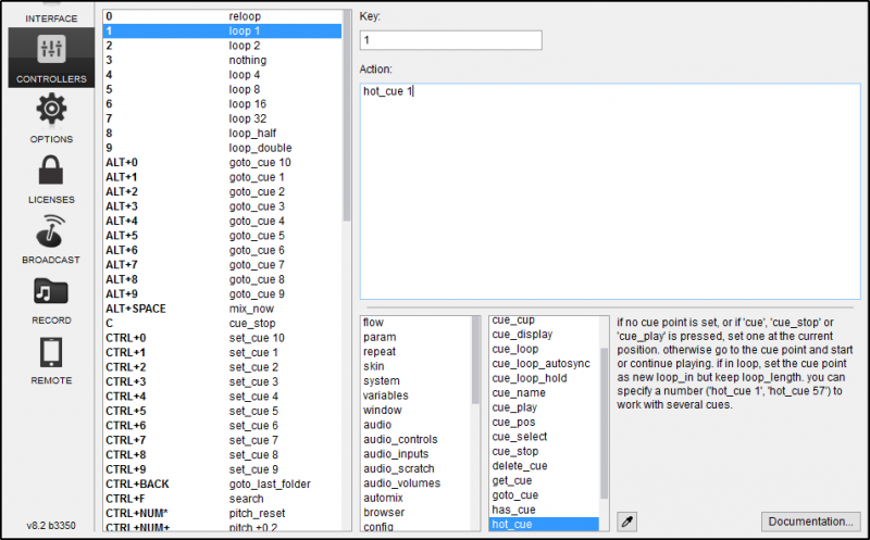 • Type an appropriate action in the Action: box, e.g: hot_cue 1 or select an action from the list below. VirtualDJ will auto-fill with one of the available actions as you type.
