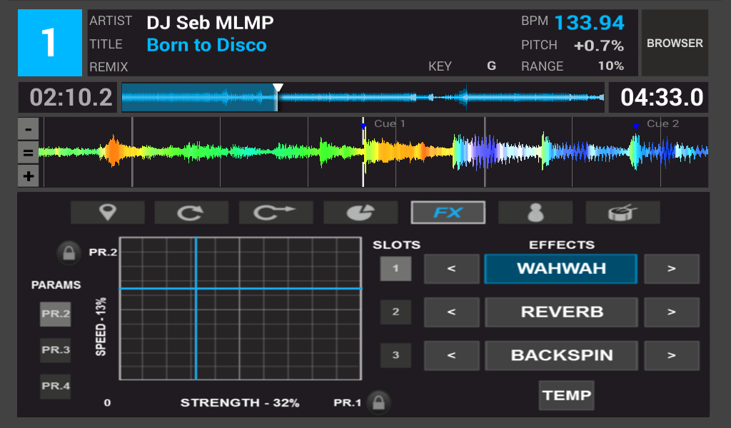 Turn your iPad to side-deck controller. 8 Pads matrix with Hotcues, Loops, Loop Rolls, Effects, Sampler, custom buttons and Slicer controls. 1024x768