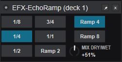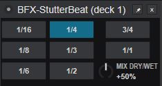 In time with BPM, outputs repeat sound in reverse of playback direction. Compatible with the BFX-Buttons PAD.