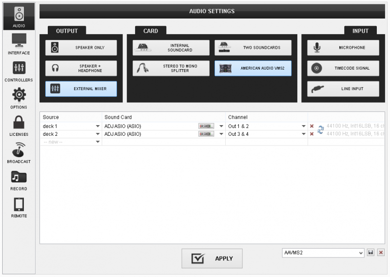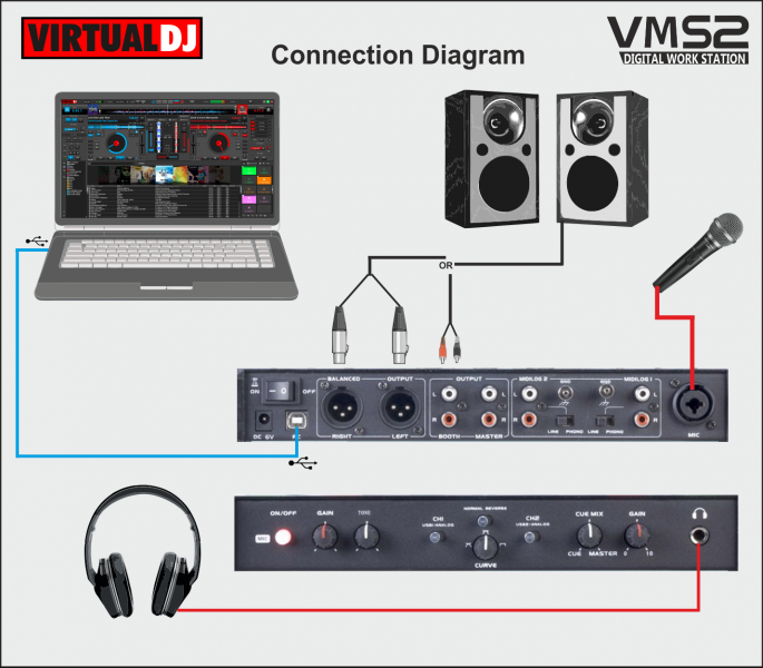 Drivers: Connect VMS2 with a USB port of your computer and install the latest ASIO drivers (for Windows only) from http://www.adj.com/vms2 (Download tab)