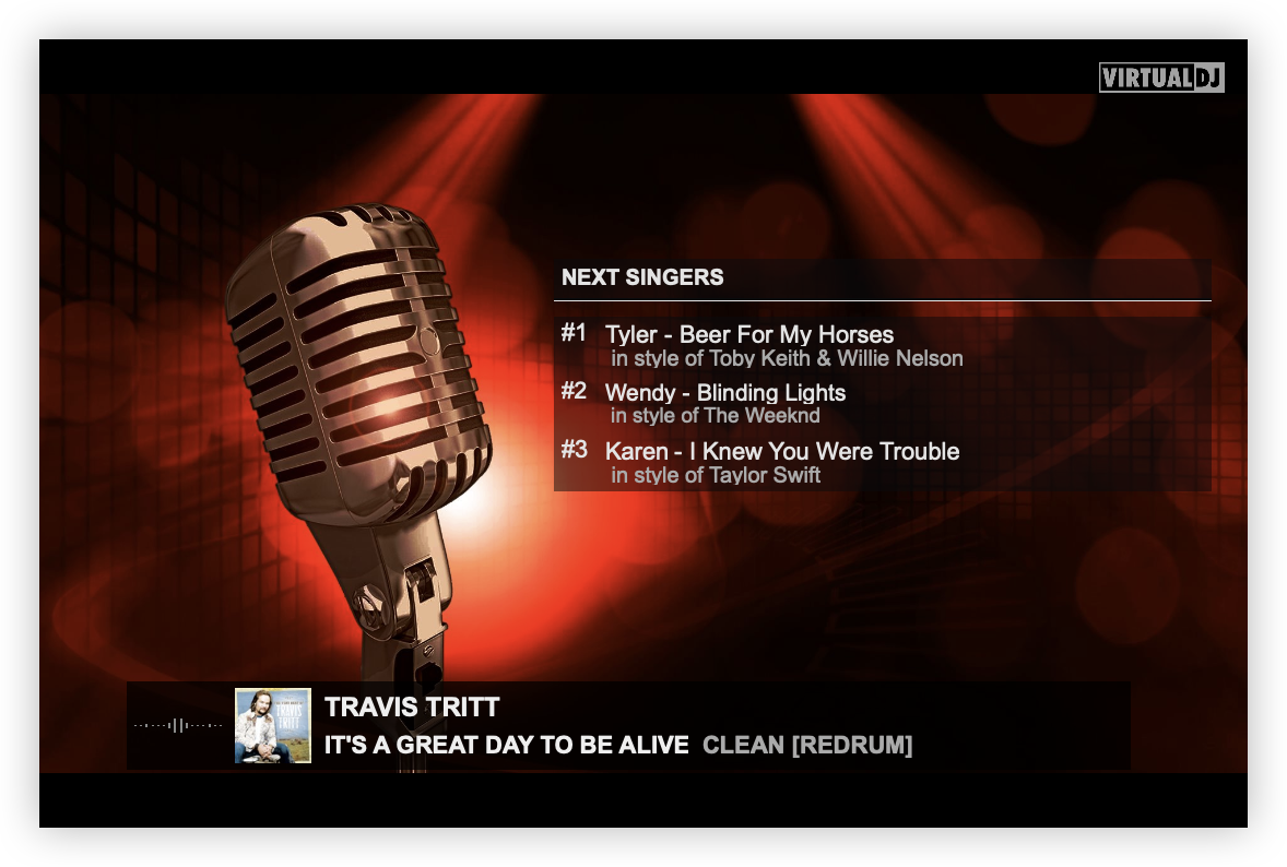 Karaoke overlays work in conjunction with the Karaoke feature located in the SideView.