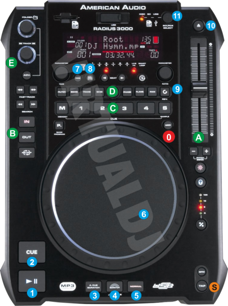 0.MIDI. Press this button to set the RADIUS 3000 to MIDI mode and allow to the unit to control a VirtualDJ deck. Notice that the unit will still be detected as a MIDI device, however it will not control any VirtualDJ operation if the unit is not on MIDI mode.