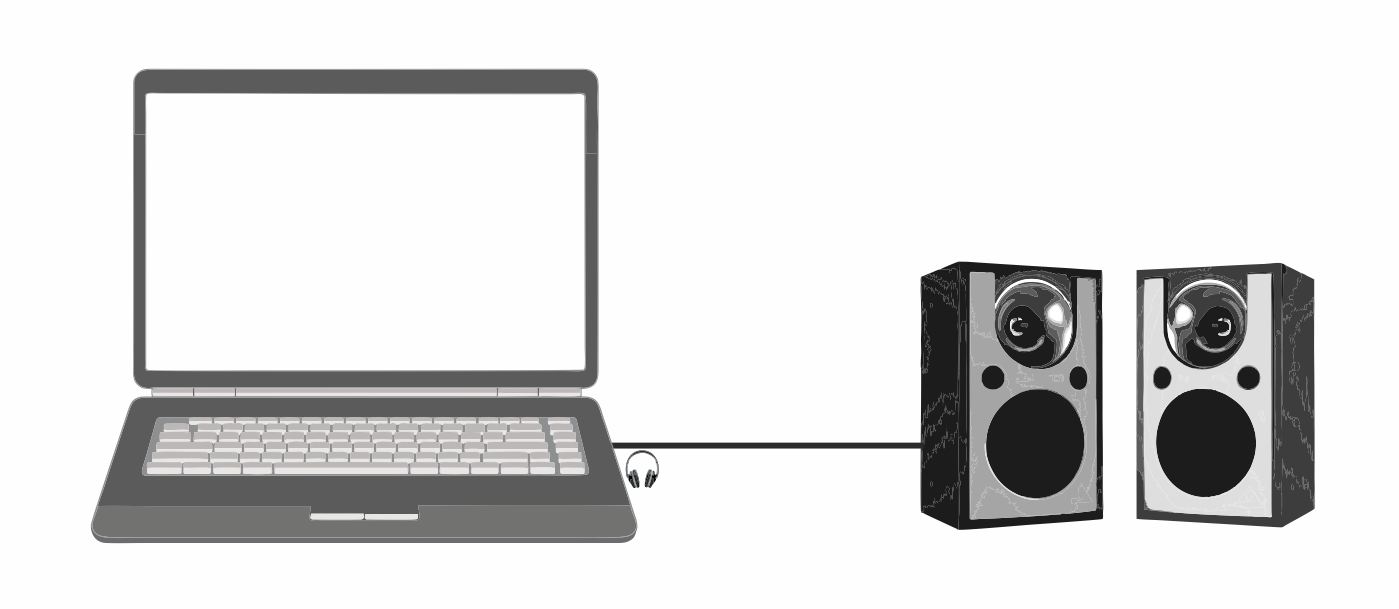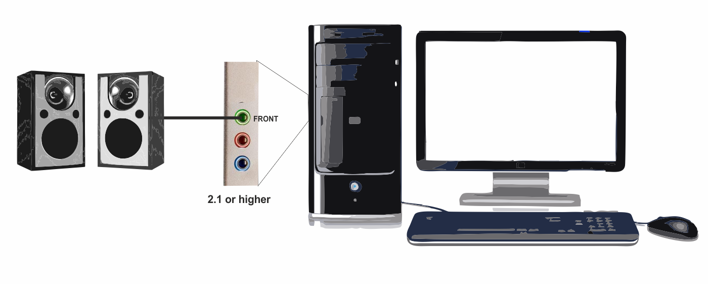 This Audio configuration is designed for use with the Primary Sound Card of the computer either using a couple of speakers connected to the headphone/speaker jack or the computers on-board speakers if equipped. To use speakers, simply connect them to the output jack of the computer.