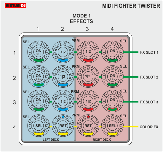 FX Param 1/2 toggleColor FXENC_4_1/4_4Select Color FX when in Select mode