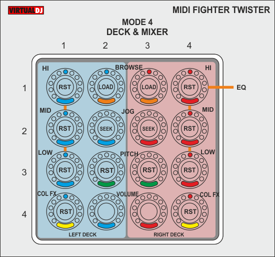 In this mode you can control basic Mixer functionality such as 3-Band Equalizer (or Stems depending on the EQ Mode), Volume and Color FX for Left/Right Decks, along with Browsing, loading Tracks, Tempo adjust and Nudge/Seek controls.