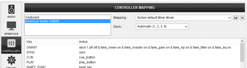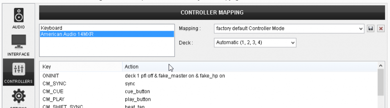 factory default Controller Mode mapping is selected. The factory default Mapping offers the functions described in this Manual, however those can be adjusted to your needs via VDJ Script actions.