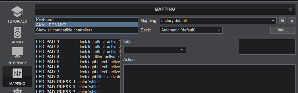 factory default” available/selected from the Mappings drop-down list. The factory default Mapping offers the functions described in this Manual, however those can be adjusted to your needs via VDJ Script actions.