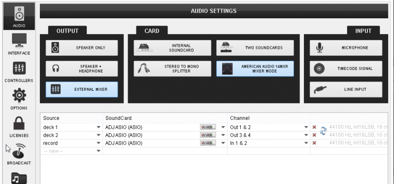 The American Audio 14MXR does not offer the ability to record or broadcast your mixing internally. However, recording & broadcasting (including the Microphone inputs) is possible in both Mixer and Controller modes, by following the way described below.
