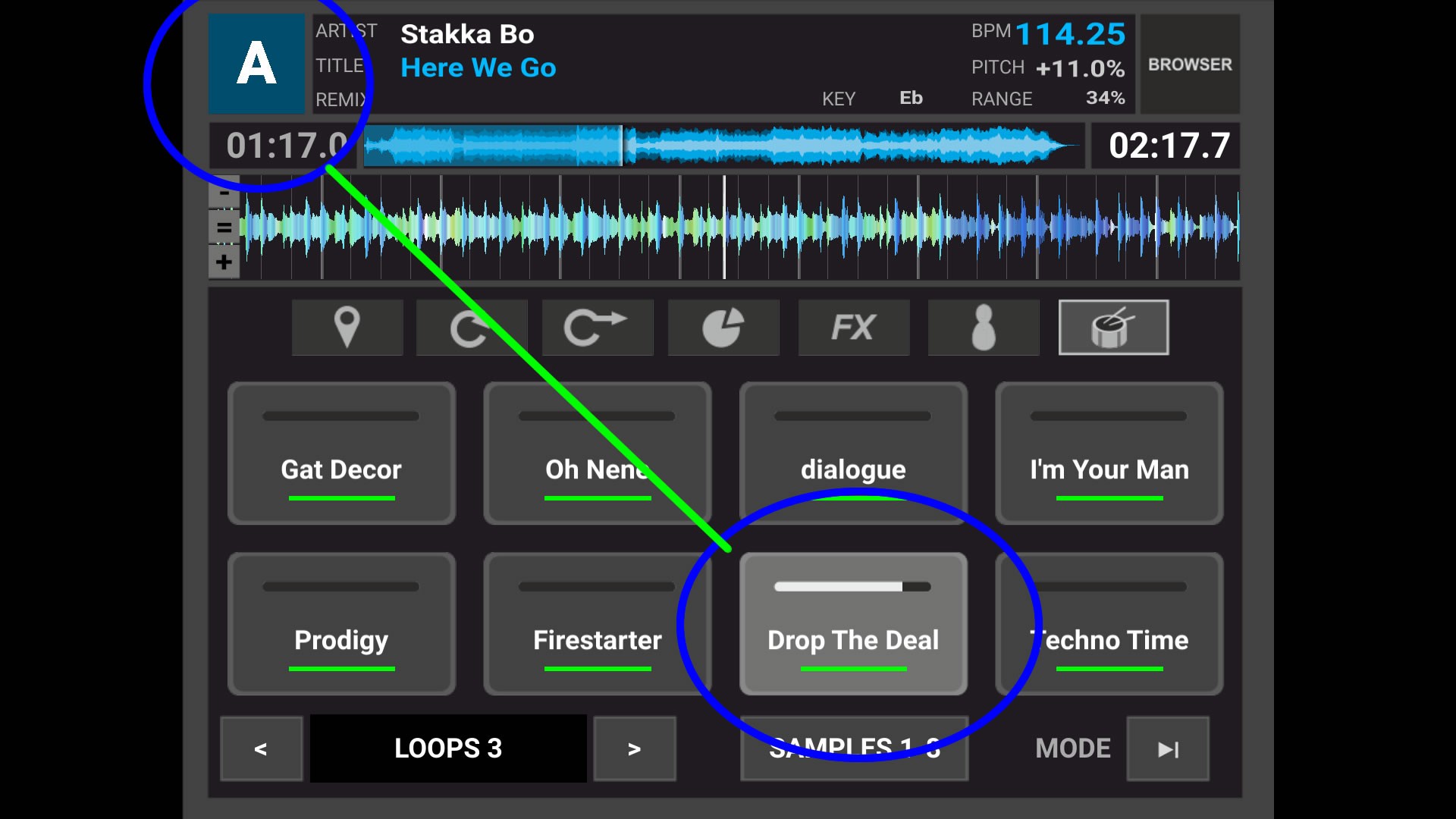 Cuando estoy mezclando y meto un loop con el sampler desde la app para android con el skin de pads, tengo que fijarme bien que en la app este seleccionado el pad del deck que este seleccionado en VDJ en la pc porque sino no se sincronizan los BPM, no encuentro la forma de sincronizar los loops desde cualquier deck seleccionado del pad en la app, con la controladora no tengo ese problema ya que solo tiene 4 botones por deck, pero los tengo programados para efectos y por eso uso el sampler con la app del celular, espero haber sido clara, adjunto capturas de la app y de la pc.