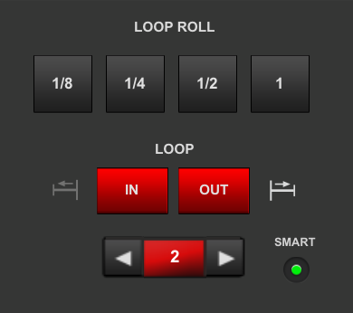 LOOP CONTROLSThe IN and OUT buttons are available to manually control the loops size or the Loop can be triggered by clicking on the loop size while using the arrow buttons to increase or decrease it.