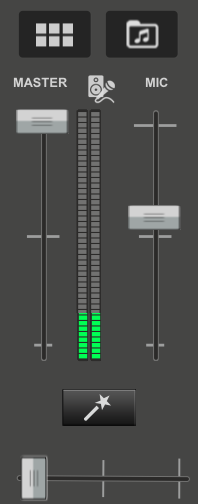 In Master View, a Master volume fader, Mic input fader and VU Meters for the Master and Mic are displayed.