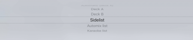 Touching the down arrow to the right of the load button will provide the load options. A track can be loaded to either deck (Automatic is the default), the Sidelist, Automix List or Karaoke List.